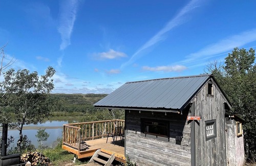 Located in the River Hills of the North Saskatchewan with your very own front-porch view of the river, forest and sand-bars. Peace-and-quiet await you. The cabin features a rustic, yet comfortable build - a deck which beckons enough room for 2+ to enjoy the warmth of your morning coffee, afternoon ciesta or your very own magnificent sunset. Complete with a firepit, outdoor cast-iron wood stove, and RUNNING WATER, the possibilities are endless.