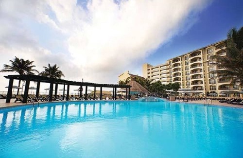 This complex is located on one of the best beaches in Cancun and has a spectacular view of the Caribbean. The elegantly decorated units feature kitchens and balconies with ocean views. In the complex there are swimming pools, tennis courts, two restaurants and a mini market. Recreational activities and daily maid service is offered. Guests can venture out for boating, sailing, skiing, and jet skis, both in the nearby lagoon and at the sister complexes The Royal Caribbean and The Royal Mayan. Excursions and water activities can be hired at the property's tourist information kiosk.