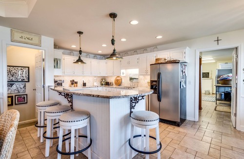Its entertainment heaven with a large screen TV inside, Sonos system inside and out, two large dining tables on the porch, a gas grill and Big Green Egg, a firepit in the back yard in the middle of six Adirondack chairs for fires year-round.