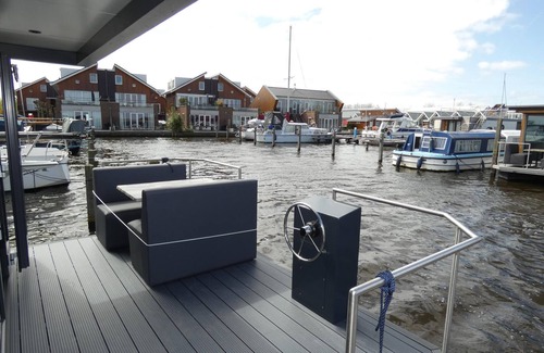 Spend a dream vacation on the water in this modern houseboat. | Boat Rental in Uitgeest