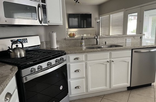Gather around the candle lit fireplace in the family room. Stream your favorite shows on the large Smart TV. Share delicious meals prepared in the gourmet kitchen or grilled to perfection on the Weber BBQ