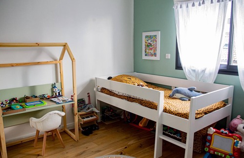 - three bedrooms with two double beds (160x190, 180x200) and a child's bed (80x180);
