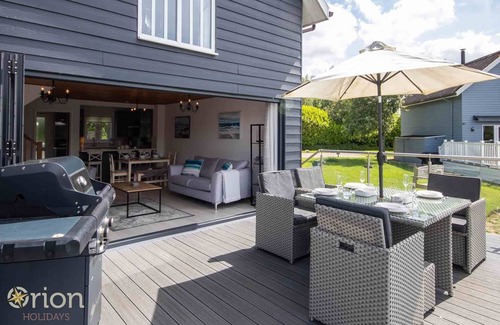 This conveniently situated lodge is a spacious 3 bedroom ‘New England' style holiday cottage directly overlooking Spring Lake. It is furnished & equipped to a high standard with an open plan living area leading via bifold doors to a south facing sun deck with BBQ and outdoor seating.