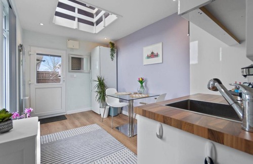 The St Helens Studio, nestled in a peaceful suburb of Brighton, offers easy access to the city center via a bus ride. This contemporary detached studio features a private entrance, patio, and parking for two cars and a shared EV charging point. With a separate kitchenette, dining area, and a well-appointed shower room, it ensures a comfortable stay. Guests can make use of the wifi and smart TV, allowing them to stream their favourite shows and movies from platforms like Netflix and Amazon Prime