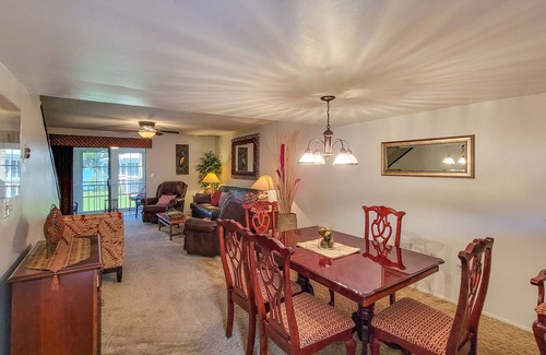 Your oversized and fully-furnished porch is sure to become your favorite spot in the townhome. With beautiful views of both the community pool and the river, it's such a calming and restorative spot. Boasting both lounging and dining areas, you may well decide to simply spend your entire vacation right here. And that would be lovely.