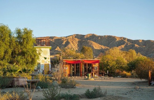 The property is nestled in the picturesque desert ambiance of the stunning Morongo Valley. The beautiful "in the middle of nowhere" location offers the perfect escape from the everyday hustle and bustle while still being a short drive away from nearby towns and cities and their numerous restaurants, shops, and attractions.