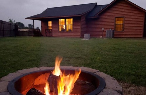 Star Valley is a new log cabin perfect for smaller families who truly want to escape the hustle and bustle of the city. The wooden fence surrounding the property provides complete privacy. The soothing hot tub is an additional bonus not found at many properties. The cabin is nestled in the Arbuckle Mountains just a mile and a half from Lake of the Arbuckle’s Eagle Bay boat ramp and only 1/2 mile from the Chickasaw National Park Boat Ramp. . With outdoor amenities such as a soothing hot tub, outdoor fire pit, and park style grill, the fun continues when you arrive back at the cabin after a full day of exploring the local attractions. Or maybe you just want to relax in the front porch rocking chairs, and watch the beautiful mountain sunset as the deer wander through the yard in the evening. When you’re ready to relax indoors, enjoy the nicely equipped kitchen, fully furnished living room with flat screen TV and DVD player, as well as comfortable beds and flat screen TV’s in each of the bedrooms. Netflix, Hulu, Sling TV and Wi-Fi are included as well. The master bedroom has a desk in case you need to wrap up a little out-of-office work before lake time. There’s also a washer and dryer so you won’t have to worry about keeping your beach towels and swimsuits spiffy. Come enjoy this quiet little cabin in the Arbuckle’s and all this beautiful area has to offer.