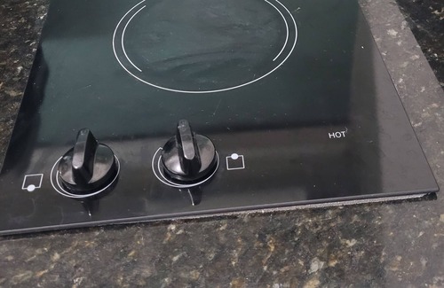 Note*** There is not a full sized oven in the studio. There is a two burner cook top, a microwave, and toaster oven that can be used to toast, bake or broil, and a microwave.