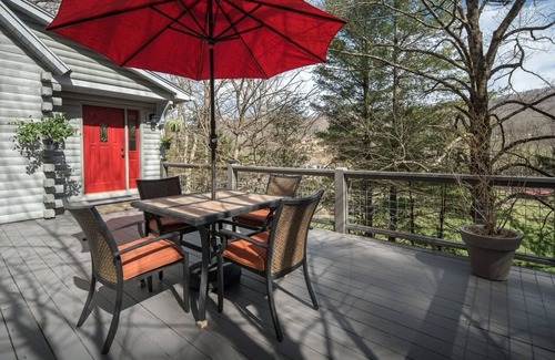 Log Cabin with views and stream!! Minutes to Downtown Boone, ASU and Blue Ridge Parkway. Ten minutes to tubing and kayaking yet privately located on 6 acres. Two Living rooms with fireplaces, outdoor dining, easy access. Relax by Fire pit while listening to babbling mountain stream and taking in the magnificent star show. Large deck for outside living while enjoying the beautiful scenery that surrounds you. Just 15 mins to shopping and dining yet you enjoy complete quiet and privacy. Two sitting areas with fireplaces. Loft with a twin, main level with great room, dining, kitchen and laundry. Downstairs queen bedroom, additional living room, bunk room with full and twin beds. Acres to explore or bring horses to the large pasture area. Stables for a horse for an added fee. Ask for details.