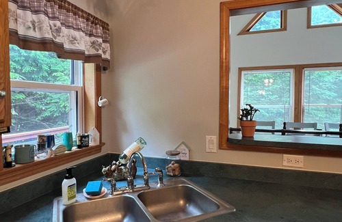 Escape to our Adirondack cape cottage! Sleeps 11 comfortably and is peacefully nestled in the woods, but only 12 miles north of Lake George!