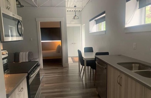 Station 1 : Suite loft, industrial look, complete with a full kitchen, 2 full bathrooms, laundry, cable and internet. Our Boutique Suite loft has a private entrance for guests with free parking. 5 minute drive to grocery stores and restaurants. 10 minute drive to downtown Moncton.