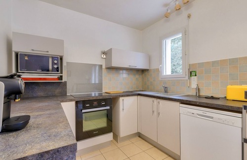 The living area welcomes you with its blue touches, it is a pleasant place where you will enjoy gathering, whether in front of a good film in the living room or in front of good dishes in the dining room. As for the kitchen, it is equipped with everything necessary: induction hob, refrigerator, microwave, oven, freezer, dishwasher, Nespresso coffee machine, toaster and kettle.