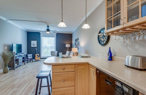 - This modern 1-bedroom, 1-bath condo is located in the heart of Downtown, just 1.2 miles from Broadway’s live music, incredible dining, and local attractions. Perfect for couples, solo travelers, or business guests.
