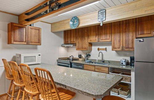 After a long day of exploring the Aspen Snowmass area you will look forward to taking it easy in the inviting open concept living space. The full kitchen, wood-burning fireplace and flat screen TV will enhance your vacation experience. Just steps from your condo you can easily to walk to one of Aspen's wonderful restaurants or choose to prepare a wonderful dinner in your welcoming vacation rental after picking up groceries at City Market, just across the street!