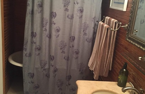 The studio is 375 sq ft. Cable & WiFi included. Central Air conditioner and Heat. Air ducts recently cleaned. Full size fridge. Four burner stove with attached oven. Queen size bed. Bathroom has a cloth foot tub and shower combo.