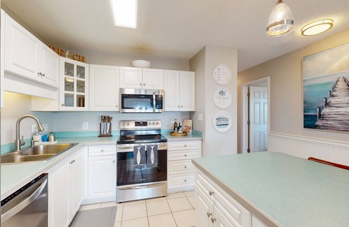 Inside, Relax to the Max and quickly get comfortable amidst the living room's plush seating, upscale artwork, and large smart TV. Steps from here, the well-equipped kitchen positively gleams with its brand-new stainless steel appliances and ample meal prep space. Pleasantly decorated with fun beach-themed mementos, the bedrooms boast personal TVs, high-quality linens, and central air-conditioning. The bathrooms are just as impressive with their large vanities and respective walk-in showers/jetted tubs. A private washer/dryer rounds out the interior amenities at your fingertips.