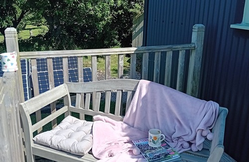Relax & unwind in a gorgeous bespoke shepherds hut set in its own garden in the quiet countryside looking out over the coast between Hartland Quay & Hartland Point. All modern conveniences , internet, solar panel supplied electricity , shower, toilet, sink, heated towel rail, stove, microwave wood burner, fridge, comfy double bed, toaster, kettle, garden, bbq, fire pit with fire wood supplied.