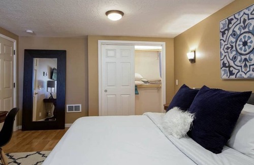 Stay in My District Forest Park! Large, private daylight basement apartment with separate exterior entrance. Nestled in the trees w/access to Forest Park Trails, across the bridge St Johns Neighborhood. (5 min), less than 15 min. from downtown Portland and Pearl District. Great amenities to make your stay as close to home as possible. 1bed/1bath, Full kitchen, additional sleeping area in living area, dining room, private laundry, WIFI, Smart TV, & FREE street Parking. Dog Friendly!