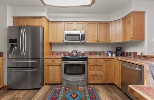 This beautiful true ski in / ski out condo has 3 bedrooms, 3 bathrooms, and boasts incredible views with the best location at the base! Walk right out the door to the elevator, which will take you to the Steamboat Ski Resort base and multiple chair lifts. At the end of the day, Slopeside Grill or Cafe Diva for apres ski happy hour and then take the elevator right up to the condo to grab your bathing suit before heading to the pool and hot tubs. Large living area, and plenty of rooms for family or guests, this condo in Torian Plum Creekside has three bedrooms (all en-suite masters) with three full baths. The large master bedroom includes a jetted tub, large king bed, and incredible views of the ski hill. The second bedroom has a queen bed with a private bathroom and walk-in shower. The bunk room is large enough to give some room to play, with *two* sets of twin-over-double futon bunk beds. The kitchen is newly updated and large enough to spread out and cook, with newer appliances and plenty of amenities. The large living room and full dining area face the ski hill, so you can watch the skiers and the alpenglow of sunset (or head out for a few runs of night skiing!) Don't feel like skiing today? No problem, the Torian Plaza shops are just an elevator ride away. You are also just a few steps from the base area shops and dining, or grab the shuttle to downtown Steamboat. And it's also the perfect spot for summer fun -- grab a mountain bike pass to take the gondola up and ride down. Or take one of the most beautiful hikes up Steamboat mountain by walking out the front door. Feel like staying in? Enjoy the fireplace, comfortable seating, and take in the view. You cannot beat this place for a true Steamboat vacation!