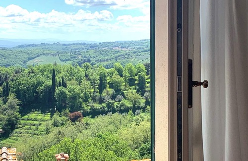 Great view of the country side from the bedrooms side, and view of the main corso, original painted celings, air condition in the bedrooms, wifi connection, laundry facility, new windows with sound isonorization