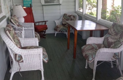 The second bedroom has two twin beds. A restroom off of the kitchen includes bathtub with glass shower enclosure. A large ruby-red grapefruit tree provides morning fruit in January and February. If you want the original fish camp experience for the whole group, this is it.