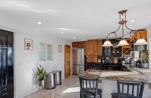 The fully equipped, modern kitchen boasts high-quality appliances, including a dishwasher, oven, microwave, refrigerator, and coffee maker, to make your stay as comfortable as possible. Whether you're a seasoned cook or just whipping up a quick meal, you'll have everything you need at your fingertips.