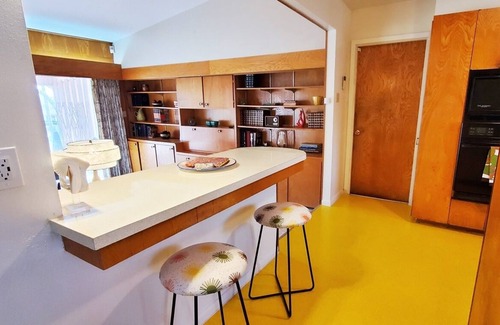 Step back in time to this 1960's MCM dream home! This home has been carefully curated with period specific antiques and modern replicas. Built in 1961 this beautiful Atomic Ranch house had only one owner until 2022. The new owner's vision was to restore it to its original glory and change as little as possible. There are vintage magazines and board games, art and so many cool little touches throughout the home. Additionally, there are modern luxuries such as two large screen TV's, DOHM white noise machines in both bedrooms, Nectar mattresses and vintage inspired small appliances, including a bluetooth speaker with AM/FM radio.