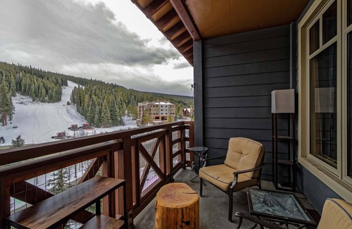 From the balcony, look right down at the American Flyer lift and the halfpipe - it's so entertaining to watch the skiers and snowboarders come down the mountain!