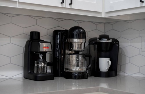 For coffee enthusiasts, you'll find a traditional coffee maker, a Keurig, and an espresso machine to satisfy all your caffeine needs.