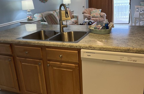 NO PETS! Sugar Beach Condos. Newly renovated Condo. Come to relax on our beautiful beaches. FREE WI-FI. Smart TVs with Netflix streaming. Very family oriented area, with lots of activities. Located on the East side of building with view of the ocean from the covered balcony. It has a very beachy decor. Kitchen is fully stocked with every utensil you could need. There is a stacked washer/dryer in the condo. The master bedroom has a Queen size bed and a private bathroom. The second bedroom has a Queen size bed and the sofa sleeper is also Queen size. Smart tv’s with Netflix are in the living room and spare bedroom.