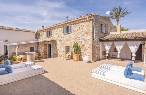 Villa Can Cuarassa is situated in the bay of Pollença, just a stone's throw away from the sea and can accommodate 8 people. A living room with a well-equipped kitchen with adjoining large dining area, 4 bedrooms and 3 bathrooms are arranged over 2 floors. Facilities of this typical Majorcan house also include Wi-Fi, a high chair, a cot, A/C and heating in all rooms and a parking area. The pleasant inner courtyard with Mediterranean plants, garden furniture a barbecue and an additional covered kitchen invites you to relax. Enjoy the top location, rent bicycles and watch the sunrise over the sea. You can reach the little town of Port de Pollença with its restaurants and shops as well as the fine sandy beach in just 3 minutes by car.