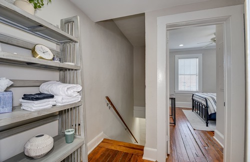 The historic Stovall-Barnes House is a short walk from the Savannah River, the medical district, the Cyber Center, and many of the city's most dynamic entertainment venues, restaurants, and museums. This charming home retained some of the original wood floors, windows, and moldings. The new modern kitchen includes granite countertops and stainless steel appliances. Includes stackable w/d, smart TVs, wifi, plush linens, and gated off-street parking. This unit is on a property with other VRBO listings. If you are in search of a place to house a large group for a wedding, girls weekend, family reunion or business function, please inquire about the availability of attached and nearby units on the property. Each unit, however, is it's own separate apartment that is completely private from the other units. There is the main house that has 4 units that share a common breezeway and then there is a stand alone building behind the main house with just two units. This is the upstairs of the two units in the stand alone building. Please also note, this home is located in the downtown environment and there will often be noise from a neighboring bar, trains and traffic.