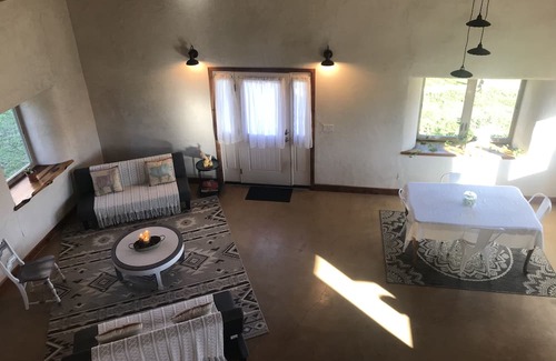 A short drive down a dirt lane leads to a green, sustainably constructed, strawbale farmhouse cottage on a working mini farm. Enjoy the views of the vineyards, mountains, sun rise and sun sets. Relax with a hot soak in the claw foot bathtub after a day of exploring. Minutes to Harbin Hot Springs, Wineries, Twin Pine Casino and Boggs Mountain. Experience the chlorine free well water, fresh air and herb garden in this serine environment.