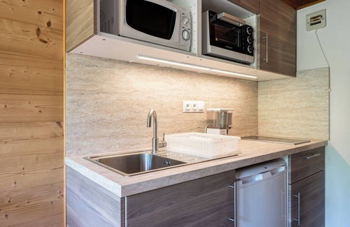 Studio n°15 : LES MARMOTTES: 3rd floor - 25m² with balcony overlooking the slopes in winter and the mountain pastures in summer (EST) - sleeps 2 to 4. It includes a fully-equipped kitchen (no dishwasher)