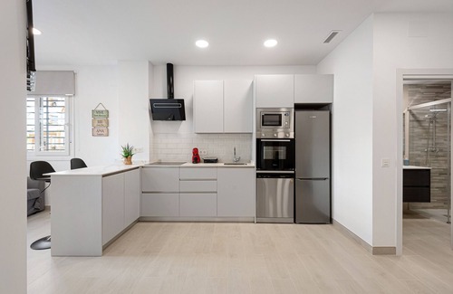 The studio apartment Apartamentos sealmar 1 with step-free interior is located in Malaga and is perfect for an unforgettable holiday with your loved ones. The 50 m² property consists of a living/sleeping area, a well-equipped kitchen and 1 bathroom and can therefore accommodate 4 people. Additional amenities include high-speed Wi-Fi (suitable for video calls) with a dedicated workspace for home office, a smart TV with streaming services, air conditioning as well as a washing machine.