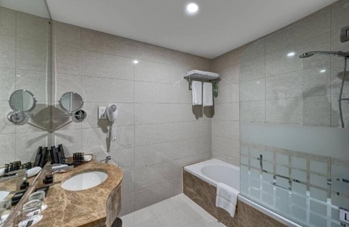 All modern rooms are furnished with LED TVs with satellite channels, individual air conditioning, a sitting area, and a minibar. The bathrooms feature a large shower cabinet and a bathtub.