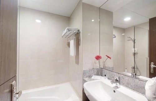 Situated in Dubai, property features accommodation with rooftop pool, free WiFi and free private parking for guests who drive. The property has lake and city views, and is 8.7 km from Dubai World Trade Centre. The property provides a sauna and a 24-hour front desk.