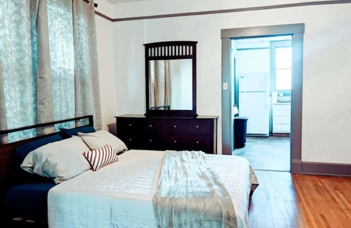 This cute, studio apartment is on the first level of a historic house near downtown Hot Springs. The living area and kitchen are big enough for guests, pets and spawling out. The modern, updated bathroom reminds you that you are in Spa City! The sunny kitchen is fully stocked with utensils, pots and pans, a full sized refrigerator, stove and oven to cook your own meals. There is a comfy queen bed with plenty of pillows and blankets for a good night's sleep.