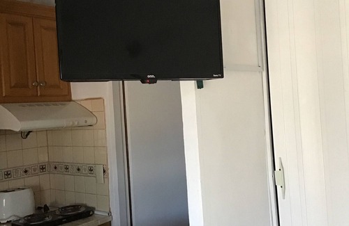 This inmacculate studio is at street level: park in front and walk right in the door. Enjoy the beautiful view of the marina and Tetakawi mountain. Our studio is located across from the malecon where the sunday farmers' market takes place, it is a short walk to various restaurants, the catholic church, the corner store, and Santo Valle supermarket. There is now a new drug store down the block at the Marinaterra Hotel.Our studio is turnkey, everything you need is there. There is internet throughout, and the two flat screen tv’s are smart: bring your Roku or your Fire stick and hook right up! There are three separate rooms: a huge bathroom with abundant shelving and a spacious shower, also a good sized bedroom with a queen bed and a wall of closets. The front room consists of the kitchen with bar seating, and a sitting area with a queen size sofa bed. There is a beautiful shade tree outside the front door, under which we have placed a comfortable bench where you can enjoy your morning coffee, or an evening drink, while contemplating the view and marvelous sunsets over Tetakawi. All utilities are included except electricity. If needed we can supply two bicycles.