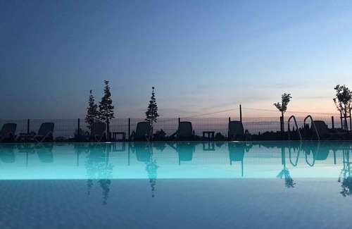 The studio built in 1980, was renovated in 2020 and is furnished in a modern style. The property is located in a hotel complex, on the outskirts. Also due to the view over a panorama from the property and its quiet and sunny location the domicile is popular. Available for use: sunbathing lawn, parasol, sun lounger and garden furniture.Holiday resort12 accommodations, 60 beds, lobby, reception, internet (WLAN) and laundry. All common rooms are air-conditioned. LocationLazise, district Colà, 130 m above sea level. The studio is located in a hotel complex, on a open plot with meadow, flowers and trees. Access is via a side road (asphalted, length 700 m). Parking is available on the property. Specialair conditioning, electric heating.Facilities: high chair and internet access (WLAN). TV reception takes place via antenna, satellite.For your safety, the accommodation is equipped with fire extinguisher. PoolAll pools are available for shared use. Outdoor pool (usable from mid April to end of September, infinity-pool, 8 m x 15 m, depth 1.40 m). Dogsallowed, EUR 7.00/pet per day. DistancesShopping 1,8 km, restaurant 200 m, town center 1200 m. thermal bath in Colà 1000 m. pharmacy in Pacengo 4 km. railway station in Peschiera del Garda 8 km. airport in Villafranca 22 km. Children's playground 1000 m. In summer: Bathing possibility 4 km in Lazise (beach 4 km in Lazise featuring gravel and stones). dog beach in Peschiera del Garda 11 km. DivisionStudio, 1 floor, 1 room, 34 sqm, in total 4 beds (including 2 additional beds), on request additionally 1 child up to 2 years in a baby cot. RoomThe entrance to your studio is located on the ground floor, is at ground level and wheelchair accessible and leads directly into the vestibule with wardrobe and doors to all rooms. Cooking nook in the living & bedroom with TV, dining area (4 seats), electric stove (ceramic hob, 4 plates), extractor hood, fridge (icebox), microwave, coffee machine, toaster and access to the balcony. Bathroom (6 sqm) with shower, 1 washbasin, WC, bidet and window. Living room with 1 double bed, 2 additional beds on double sofa bed and 1 baby cot. Credit cardsVisa, MasterCard. Terms of lease and pricesIncluded in the priceOutdoor pool, air conditioning, parasol at the pool, parking place, safe, electricity, water, heating, local tax (under 14 years), pool (30.04.25-29.09.25, 29.04.26-28.09.26), bed linen (first usage), hand towels (first usage), Wireless Internet access. Side costs-Costs on the spot:/Obligatory:final cleaning 35 € per object per stay. local tax by local tariff (if charged).On request:bed linen 7 € per person per week. hand towels 8 € per person per change. parking place (additionally) 7 € per car per day. cleaning (daily) 20 € per object per day. Breakfast - please order at booking 13 € per person per day. Late arrival after 21 pm 30 € per object per stay. baby cot (please order at booking) 7 € per bed per day. parking place for boat trailer (please order at booking) 9 € per piece per day.Deposit:EUR 150,-/object