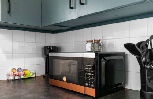 Bring out your inner chef in the fully stocked kitchen using Greenware pots & pans and silicone utensils. A starter supply of paper towels and dish soap are stocked! The dining area has a bistro table with 2 chairs.