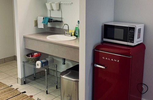 Welcome to our hidden gem of Urban Nest Studios by Sweet Digs. We've transformed an old space into a stylish and contemporary haven. Though the initial arrival may evoke a haunted house movie, with two former hotels on the lot, the locked and secure old Future Inn will soon undergo redevelopment. However, we've revitalized the front building, offering tastefully renovated units that ensure your comfort and delight.
