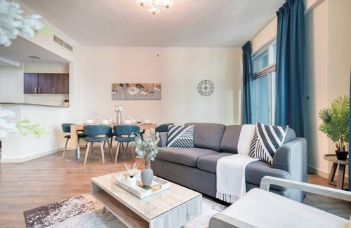 In the Dubai Marina district of Dubai, close to Mina Seyahi Beach, Appealing 2BR Apartment has a fitness centre and a washing machine. The air-conditioned accommodation is 700 metres from Barasti Beach, and guests can benefit from private parking available on site and free WiFi. During your stay at this apartment, you can make use of an outdoor swimming pool, as well as a selection of a steam room and a lift.