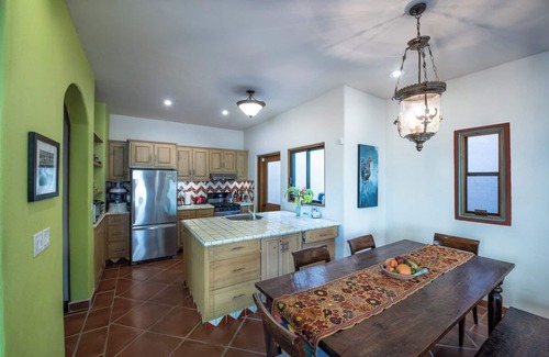 The 3,000-square-foot Spanish Colonial casa has 3 large bedrooms, 2.5 baths, an entertainer's dream kitchen, sunlit great room and dining table that seats 12. The 750-square-foot casita has a king bedroom, sofabed in the living room, double-vanity bath and gourmet kitchen. The two houses share a beautifully landscaped courtyard and an outdoor fireplace on one side, pool deck and barbecue area on the other opening through a beach gate to the Sea of Cortez.