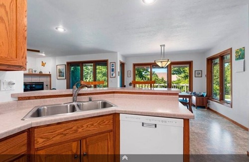 Large fully equipped kitchen, with all amenities, Outside deck for dining, BBQ Grill, Wide Screen TV, Wi-Fi and Office is provided. This is a large clean comfortable quite house with brand new beds and bedroom furniture. You will sleep like a baby, Sister Bay is centrally located close to Peninsula State Park, Ephraim, Fish Creek, Gill Rock, Washington Island, Bailys Harbor and all the activities in Door County. There is something for everyone in Door County for all ages, it's truly a premier vacation destination. We would love to have you as our guests.