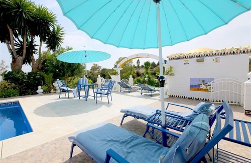 A magnificent family holiday villa located at the foot of the beautiful environment of the Natural Park of “Los Reales”, less than a 10 minute drive from Estepona town centre and beach. This lovely finca is a wonderful three bedroom hillside house that has been tastefully restored to provide comfortable living accommodation whilst at the same time retaining the charm of its Andalusian roots. It is set in approximately an acre of Mediterranean gardens with plenty of terraces and typical patios allowing you to choose between sun or shade at any time of the day. The spacious villa consists of an entrance hall that faces onto the stunning lounge area with quality seating for up to eight guests. Tastefully decorated, the living room is equipped with fireplace, air conditioning and full British TV including Sky. The lounge benefits from magnificent views to the gardens and sea through the sliding windows leading to the living room balcony with an extra dining area “al fresco” for guests. The long and spacious kitchen is fully fitted with quality appliances, a second television and a dining area for four next to the kitchen’s fireplace. From the kitchen we lead onto the separate dining room with stunning views to the mountain range and forest. It provides seating for six, a fireplace, piano and another independent air conditioning unit. The accommodation offers three stylish bedrooms. The first king size bedroom is located on the ground floor and has an en-suite bathroom with bath, shower, WC and hand basin. It is equipped with an air conditioning unit, flat-screen television and access to the patio-terrace with an extra dining table with chairs. The second en-suite king size bedroom is also situated on the ground floor and is equipped with flat-screen TV and air conditioning as well. It benefits from a modern en-suite bathroom with a huge walk-in shower, toilet and hand basin. From the bedroom there is access to the main terrace with stunning views. The third bedroom is located upstairs on the first floor and offers two single beds that may be joined together to form a super king, with open en-suite bathroom with shower, WC and sink. It offers a flat-screen TV, air conditioning and access to the private balcony with stunning sea, mountain, pool and garden views. This beautiful villa also provides two cloakrooms and a large games/relaxation room with pool table, pinball machine, movie projector and new sofas. There is a laundry room and a terrace with dining area for four facing the mountains that can be accessed from the games room. Patio doors lead from the living room and the kitchen onto a patio/terrace with outdoor furniture and a built-in bar with two fridges and a sink. Steps from here lead in one direction to the heated swimming pool with separate children’s pool and sun terrace and in the other direction to a separate patio with a purpose-built barbecue, dining area, Jacuzzi and table-tennis. In addition to the patios and gardens there is an outhouse which is a converted air-conditioned tea house. The property has charming Mediterranean gardens all around with plenty of relaxing seating and sun loungers. Stunning tropical and Mediterranean plants with beautiful fountains, a waterfall and sculptures decorating the private garden. There is also a playground area with swings for children and a Wendy house including a cot and high chair if necessary. There is also a small fenced farm area with chickens. The front of the house is ample for at least four cars and the property is entered through electrically operated gates, the property also has an alarm system. PLEASE NOTE - All bookings include a weekly mini midterm clean and the gardener/handyman will be taking care of the outdoor areas five times a week in the morning. There is nothing else you can ask for a better holiday in the Costa del Sol.