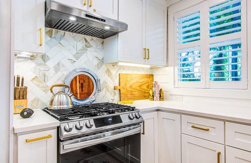This newly renovated chic home enjoys a spacious deck with tree-lined views, inviting loungers where you can unwind and sunbathe, a hammock under the trees, an outdoor dining area, and a gas grill - just the perfect setting for summertime barbecues! Inside, you will discover a chic and natural design accented with Southern touches throughout. The bright and airy open floor plan makes it easy to connect the living room, dining area, and kitchen. Wind down in the welcoming living room, featuring numerous comfy sofas and a TV, or surprise your loved ones with delicious homemade meals prepared in the spacious, well-appointed kitchen complete with modern stainless steel appliances. Additional perks include a washer/dryer, private outdoor pool, outdoor shower, beach chairs/blankets, towels, bags, toys, and games.