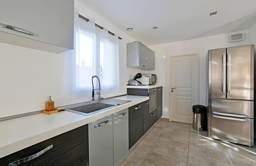 Travel to the south of France and look forward to a relaxing vacation in this inviting vacation home, which will become your second home. On two floors, you can feel at home and enjoy the beautifully furnished house. After restful nights in the lovingly decorated bedrooms, you can come together for breakfast in the open-plan living room. The fully equipped kitchen is the perfect place to do so. Then step outside. You will appreciate the quiet area, the large garden with the pool and the small covered pool house for your dinner or lunch.