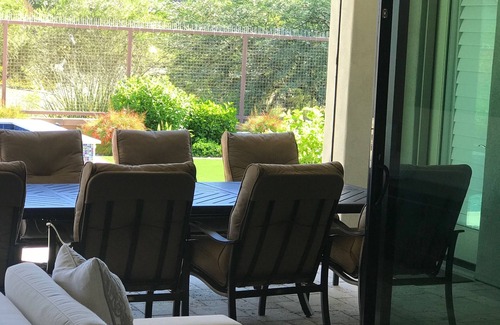 This New Modern high end luxury home will take your breath away! Fully furnished down to the towels. The gourmet kitchen has high end Woolf appliances double oven, Scotsman pebble ice maker, SubZero fridge. The backyard is an entertainers dream! It has a beautiful heated pool and spa! The built in BBQ is great for grilling and the large extended patio has remote controlled solar screens, large TV and fireplace, dining for 8 will let you enjoy the beautiful AZ outdoors! The home has 3 bedrooms and a bonus playroom with fold down couch.