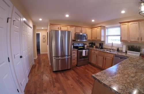 Inside you will find a fully furnished home with everything you need to just drop your suitcase & enjoy your stay! The living room has seating for 6, a 50" Smart TV and views of the mountains. There is a dining room table along with bar stools to sit at the kitchen bar. A fully equipped kitchen includes a refrigerator, stove, dishwasher, microwave and plenty of dishes and cookware. A washer and dryer are on-site as well. The Master Bedroom has a King size Sleep Number Bed, a 50" Smart TV & a 52” remote controlled ceiling fan. Guest bedroom #1 has a King size bed, a 50” Smart TV & a remote control ceiling fan. Guest bedroom #2 has a Queen size bed, a 50” Smart TV & a remote control ceiling fan. Both bathrooms have rain-shower shower heads. Cable TV and Wi-Fi are also provided and there is good cell phone signal at this mountain retreat. This home comfortably sleeps 6 and is outfitted with a Patriot UV Light Air Purifier. There are 2 seating areas out back...one off the main living area and one on the bottom. The top deck has a sectional sofa, pub table w/2 chairs, a propane fire pit and a gas grill. The bottom area is outfitted with an outside table and 8 chairs along with a fun Corn Hole game for a little friendly competition.